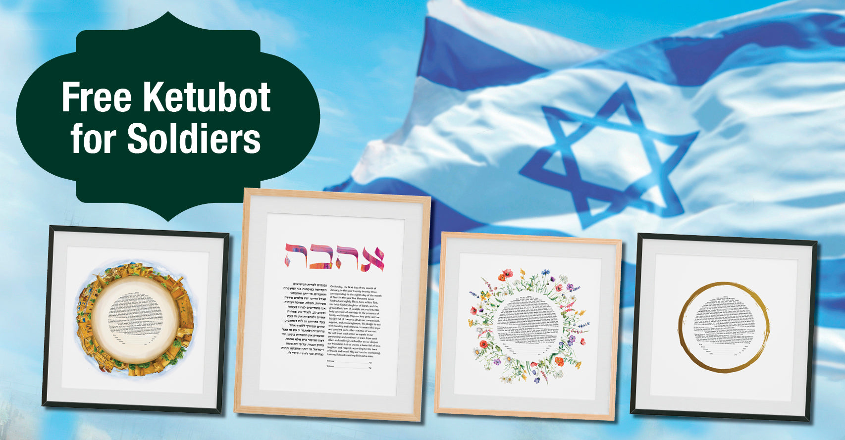 We are honored to offer free Ketubot to active service members in the IDF. We are committed to providing at least 10 Ketubot per month and will strive to accommodate more if needed. If you are an active IDF service member engaged to be married, just email us at info@WeddingKetubah.com with your names, wedding date, and the link to the Ketubah design of your choice. Please follow the instructions below: