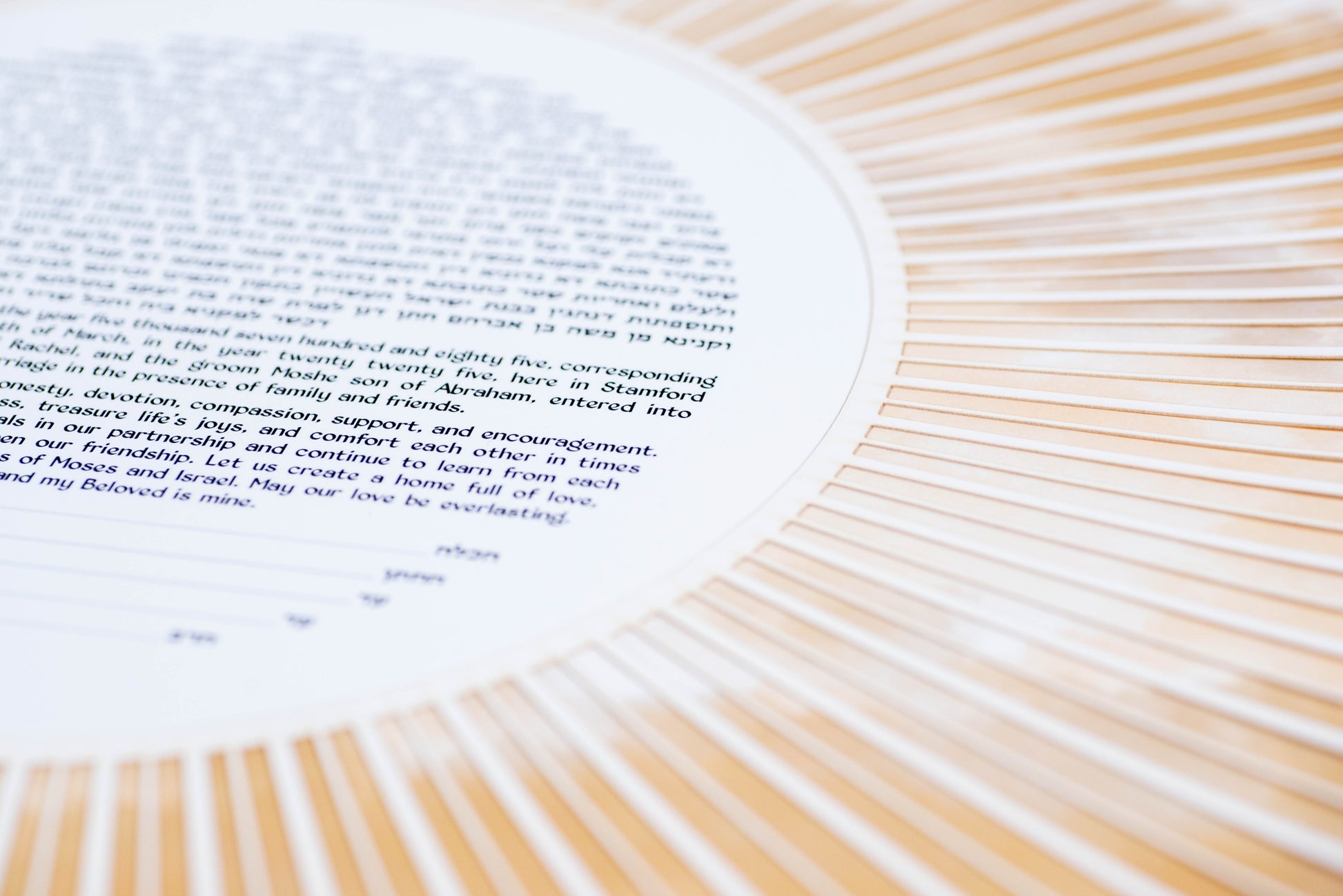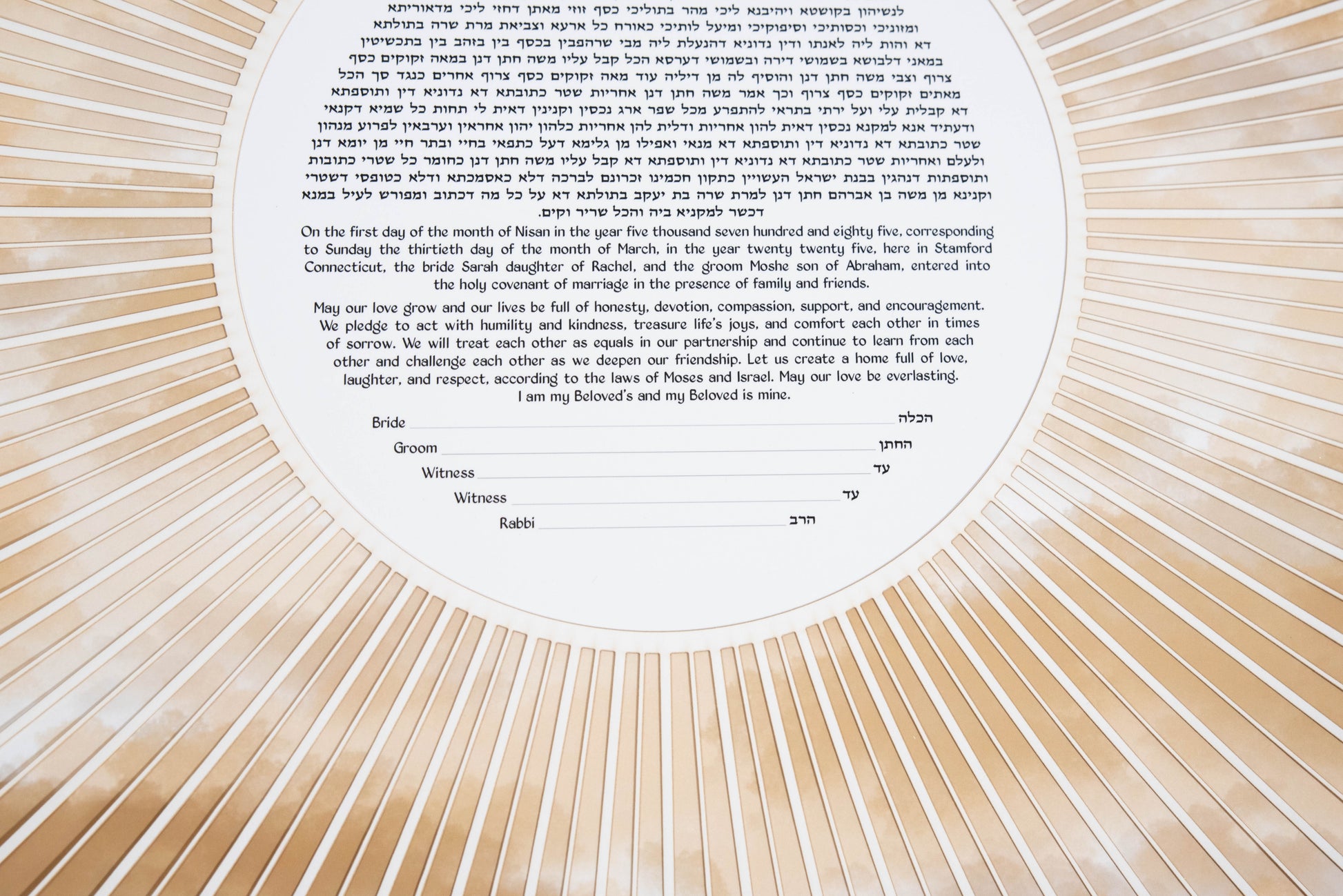 - Standard option: Your rabbi or wedding officiant fills in the names and dates by hand using a pen.