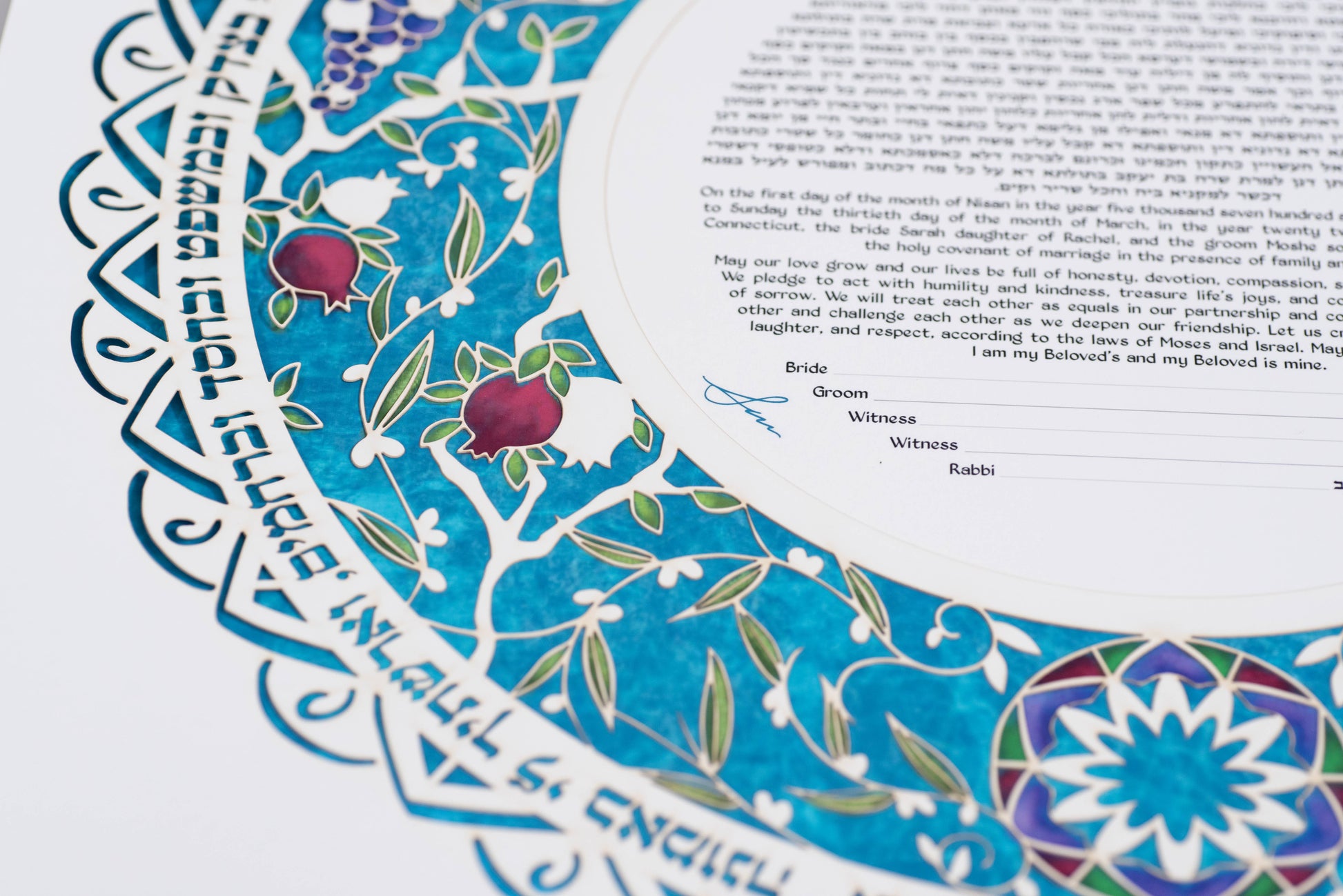 - Standard option: Your rabbi or wedding officiant fills in the names and dates by hand using a pen.
