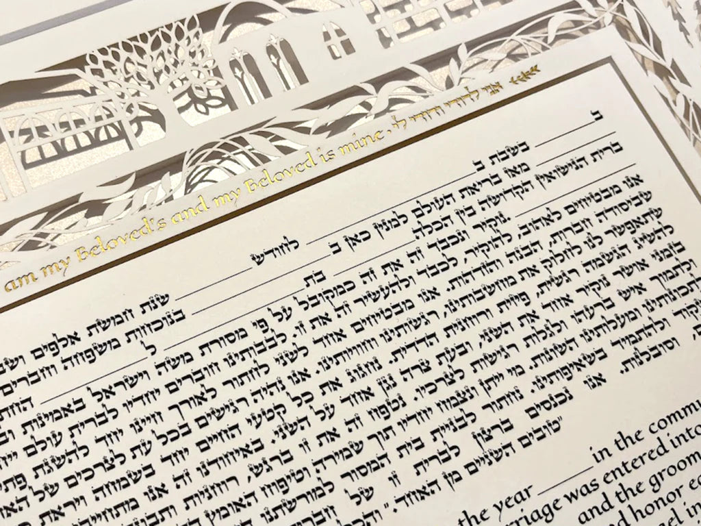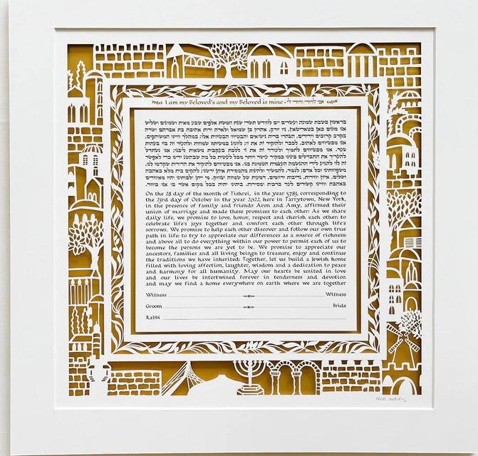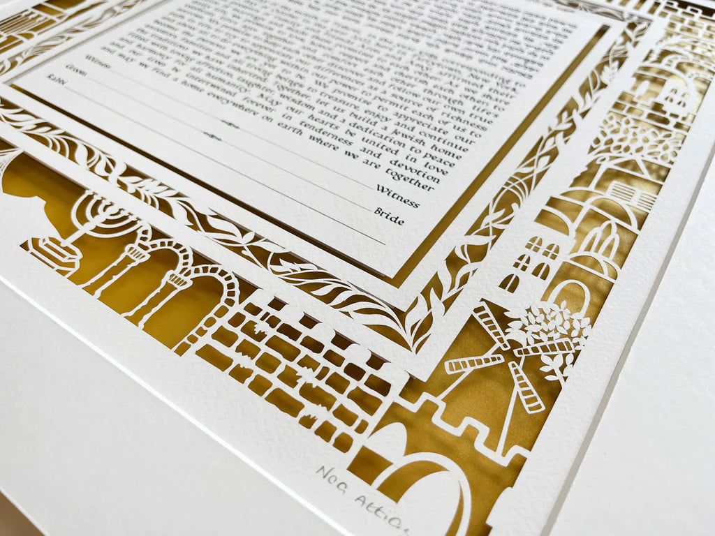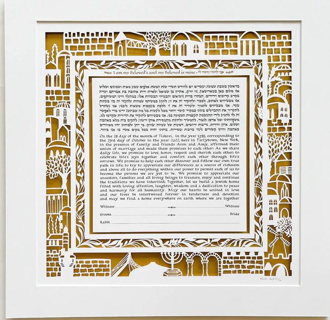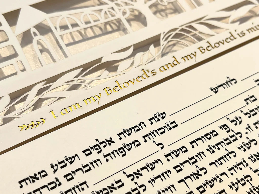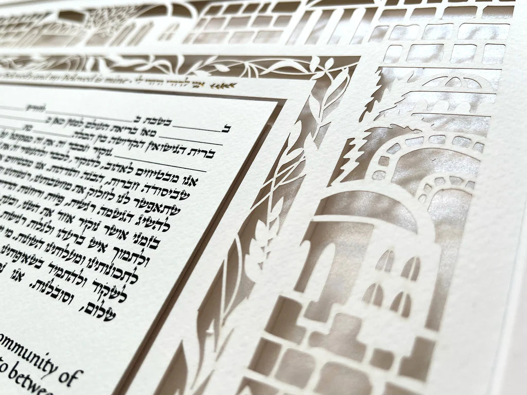 Papercut "Jerusalem Skyline" Ketubah art design - custom text