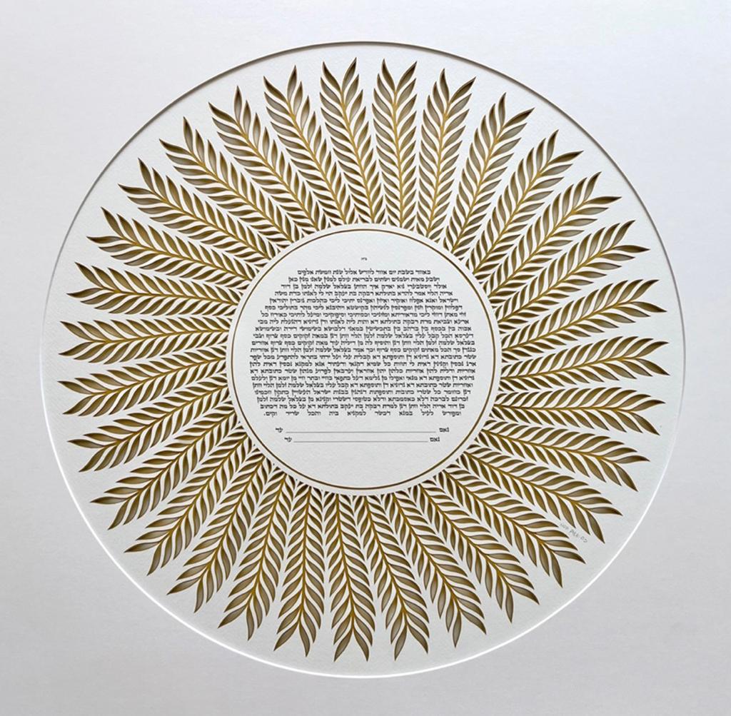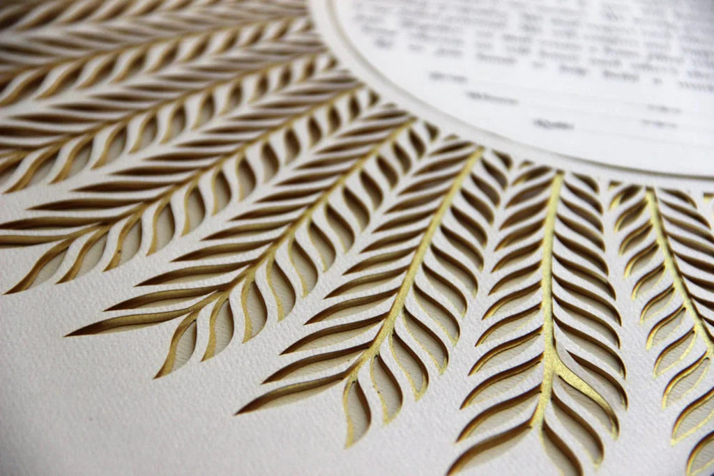 Papercut "Palm Leaves" Ketubah Art Design featuring beautiful Palm leaves - custom text