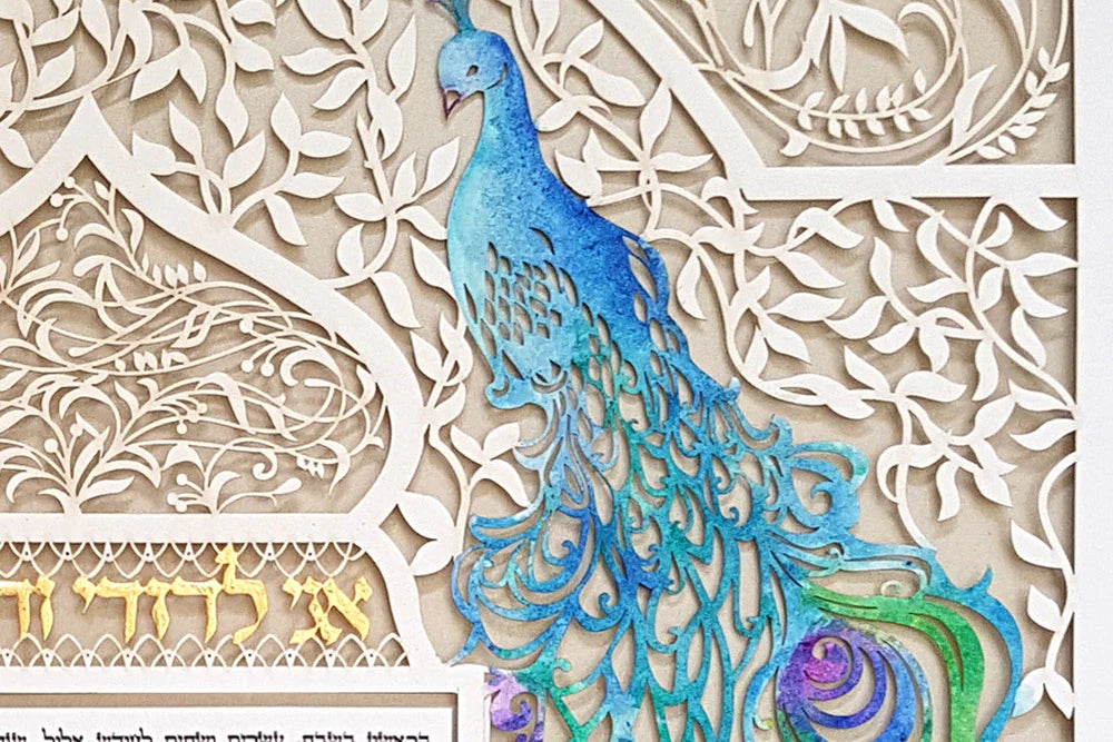 Papercut "Peacock" Art Design featuring two beautiful birds - custom text