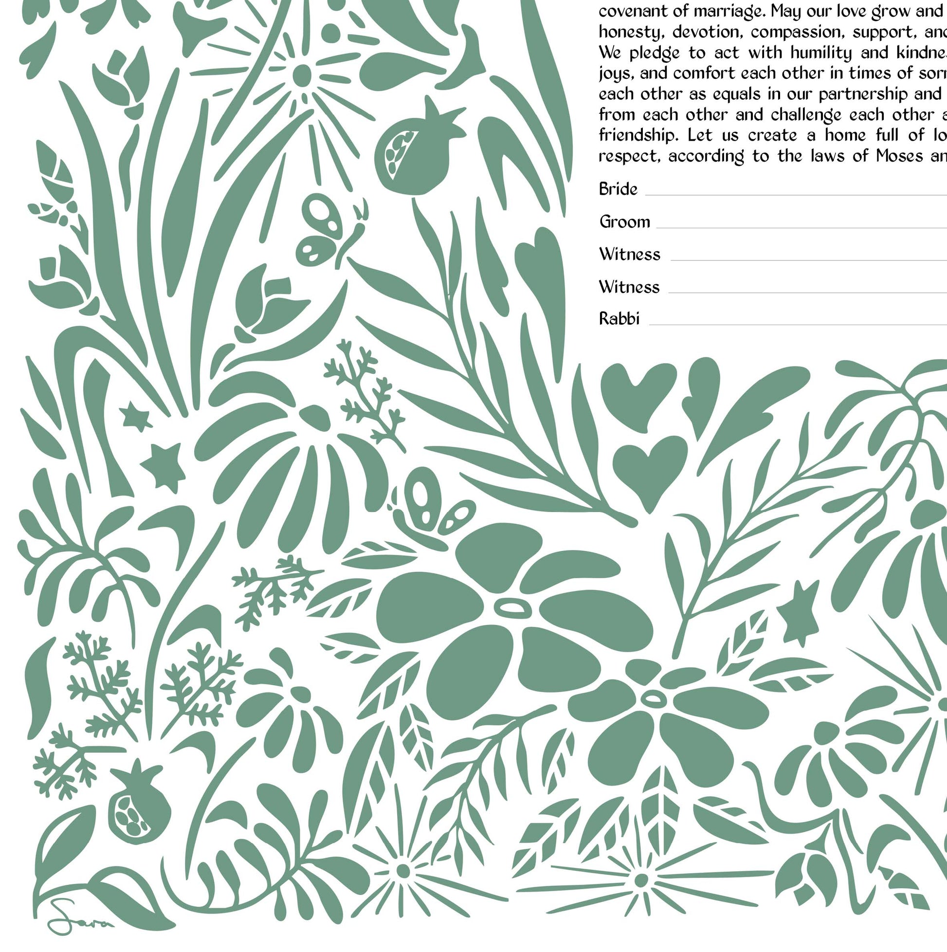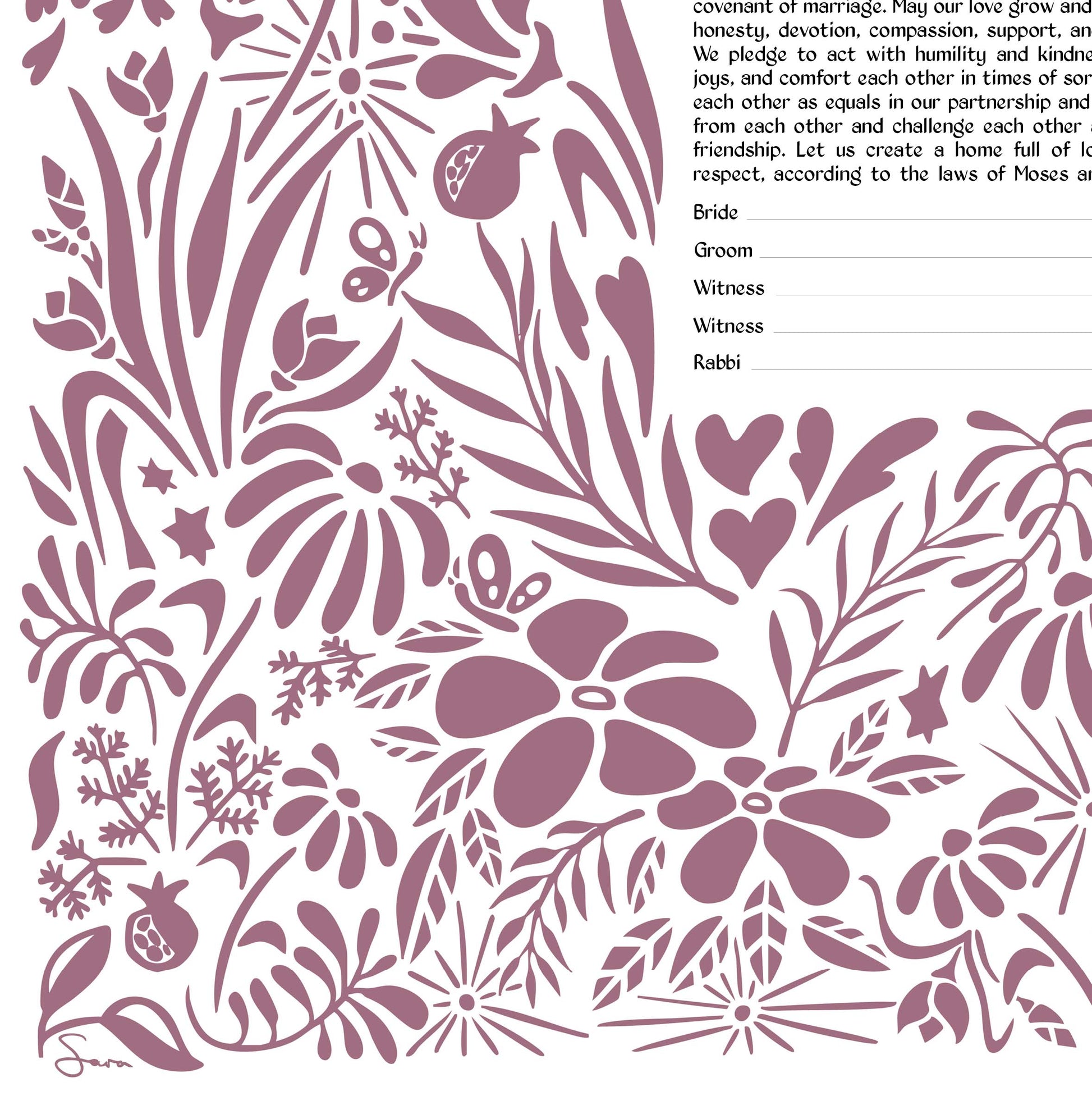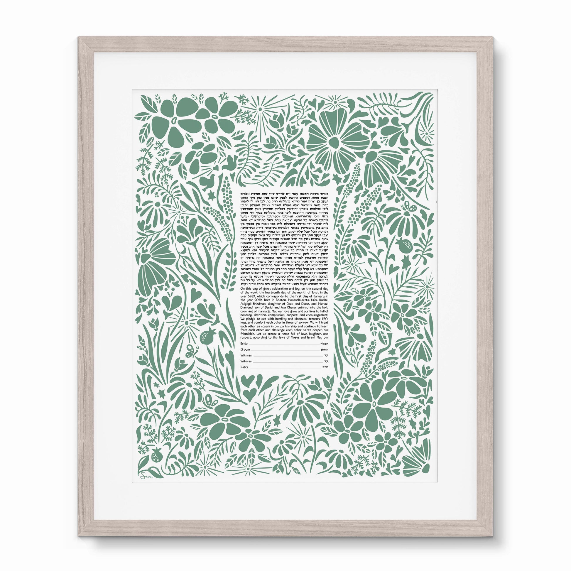 I drew the Wildflower Garden Ketubah with the intention of creating a piece that feels like a true wildflower garden while still carrying the soul of a traditional Jewish marriage contract.