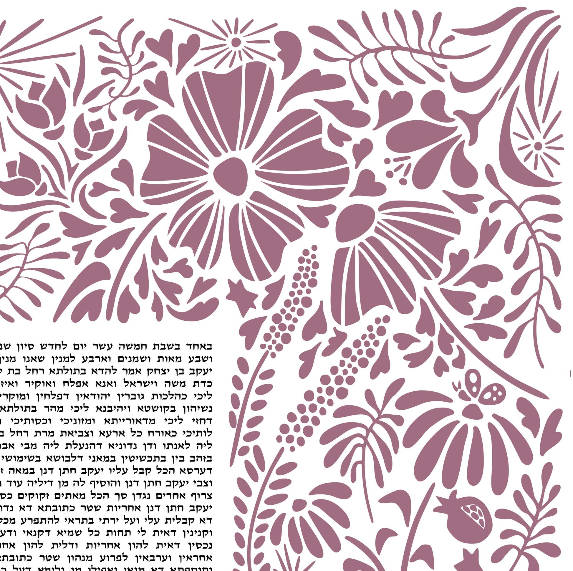 I kept the center open and calm so the vows remain the heart of the ketubah, framed gently by tradition instead of overwhelmed by it.